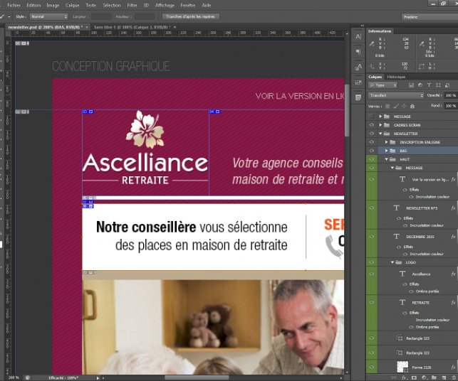 Avec tous les éléments graphiques réalisés pour la refonte du site, il n'était pas nécessaire de passer par la création de maquettes. Notre graphiste a donc lancé la conception graphique directement dans Photoshop.