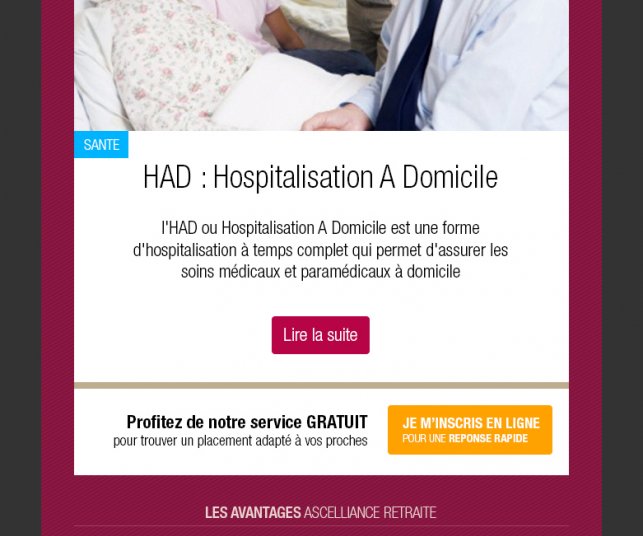 Quelque temps après avoir procédé à la refonte complète du site internet de l'agence Ascelliance Retraite, il était naturel de compléter la communication du site avec un emailing. Ainsi pour chaque nouvel article ajouté sur le site Internet, une version résumée sous la forme d'un emailing est envoyée à chaque utilisateur inscrit dans la base de données.