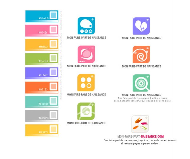 Il s'agit de proposer des couleurs en rapport avec la naissance, l'enfance et la nature. Couleur pastel et couleur vives avec un fond d'aspect naturel. L'interface doit est conçue de préférence avec un cadre et un fond de couleurs et des formes arrondies. Il s'agit de définir un style graphique propre au site web. Polices de caractère, couleurs, graphismes.