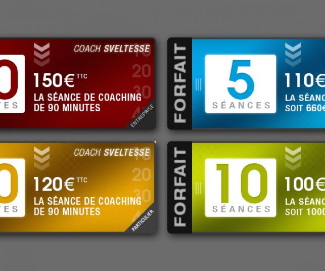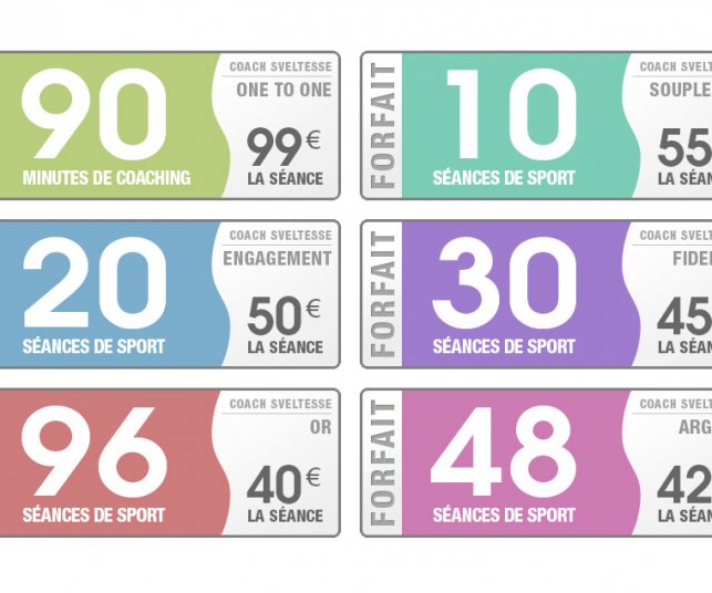Réalisé dans l'objectif d'être décliné en plusieurs autres sites et pour faire baisser le coût, la création du site Coach Sveltesse devais être simple en terme de réalisation. Pour compenser la simplicité graphique et rendre le site plus captivant, nous avons réalisé des visuels pour les forfaits de sport et les programmes sportif.